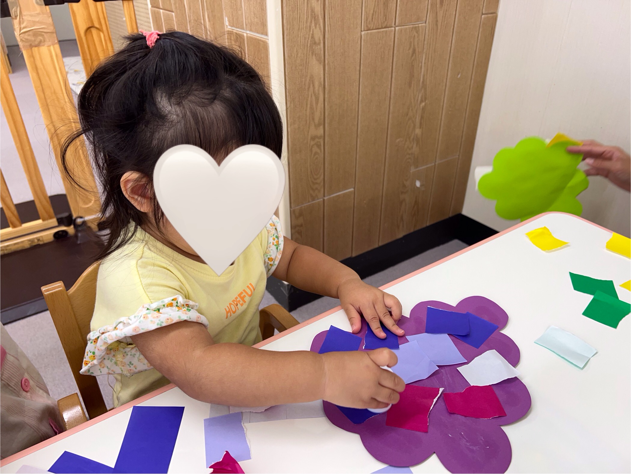 自分で折り紙を手に持って貼り付けようと頑張っていましたよ!