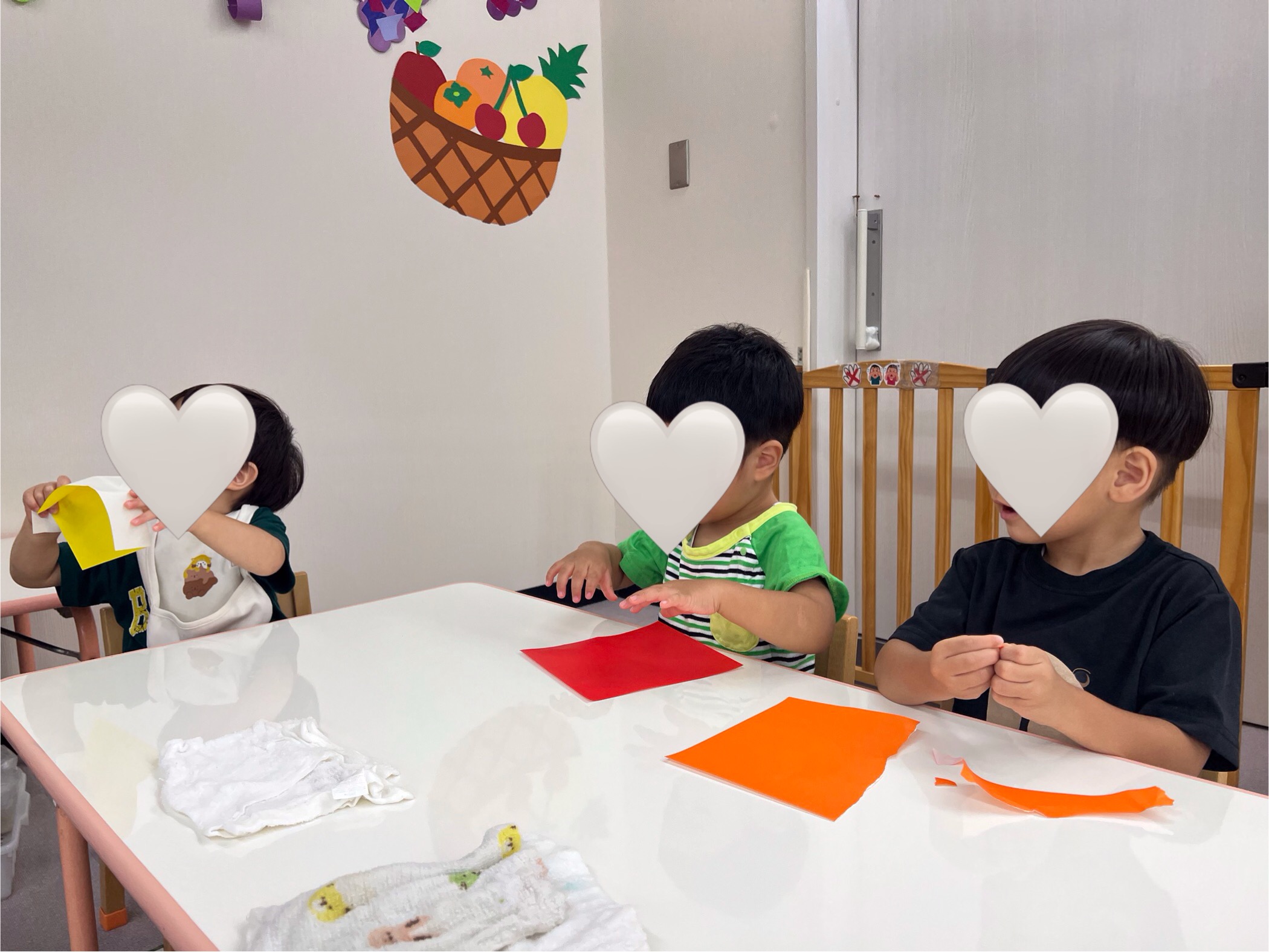 りす組は折り紙を自分でちぎるのに挑戦!✨