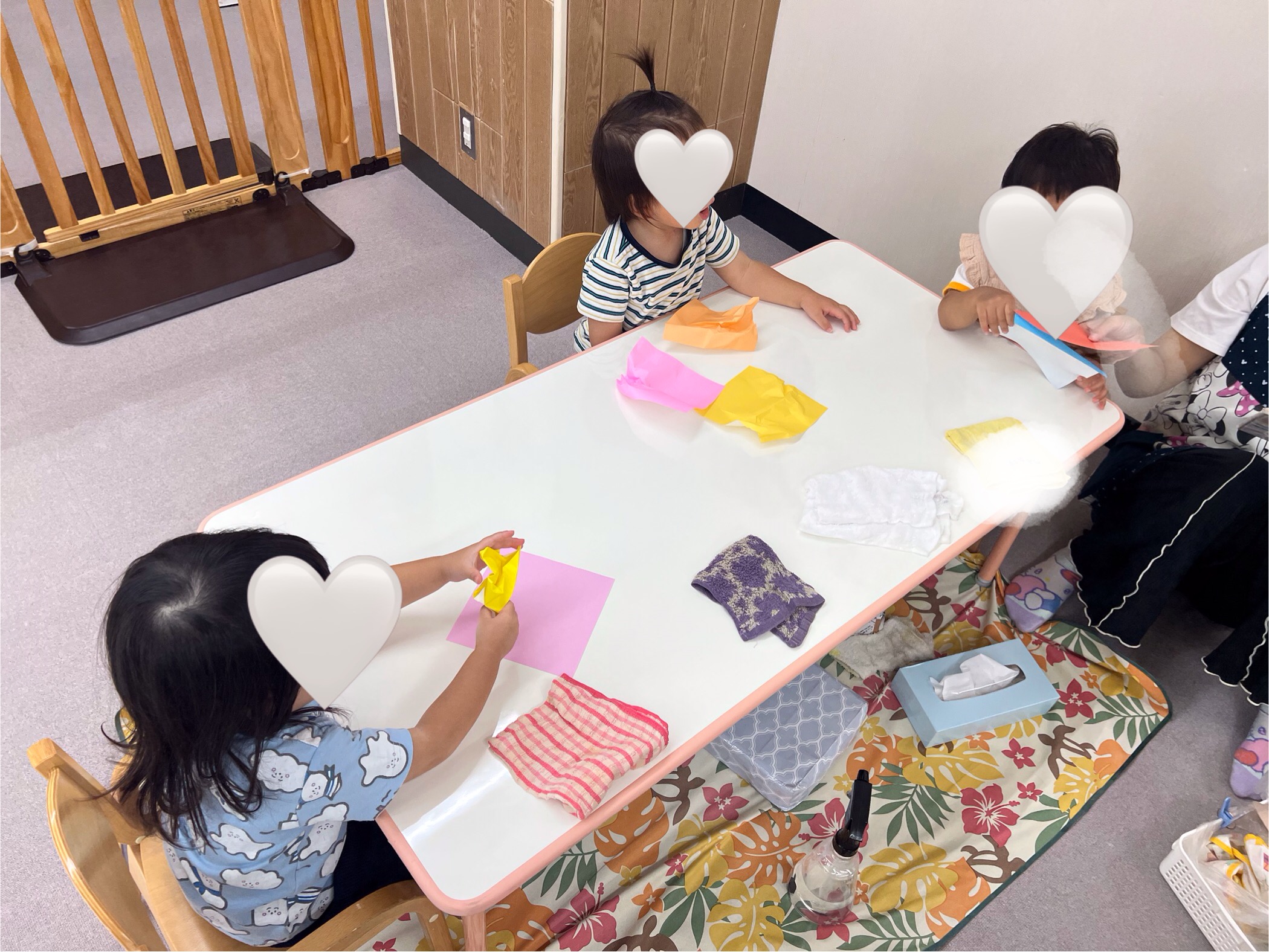 保育園に到着後すぐにみんなで折り紙を楽しみましたよ♪