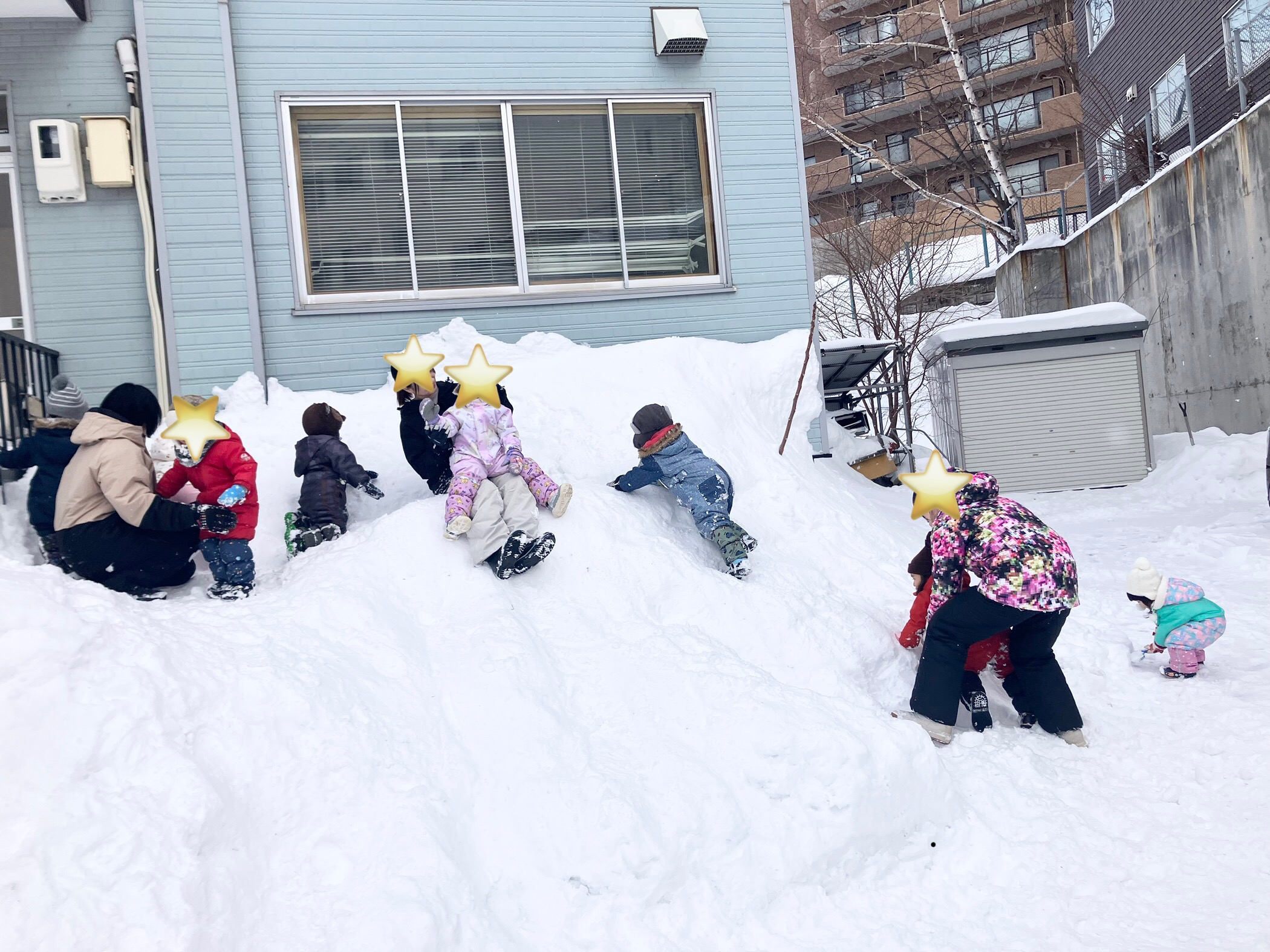 保育園の玄関前に「滑り台」や「かまくら」を作りました!