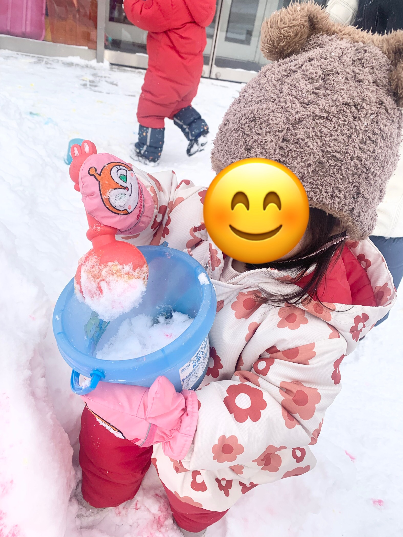 バケツに雪集めもとっても楽しい~💕
